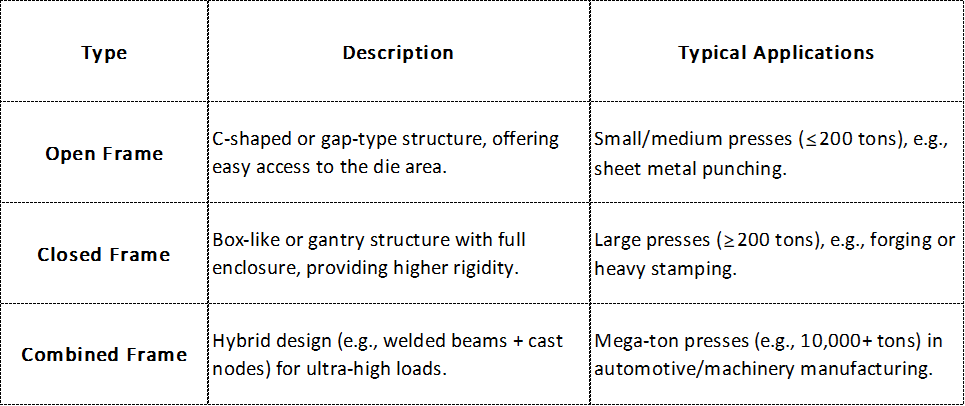 Press frames are categorized by their structure, each suited for specific applications: