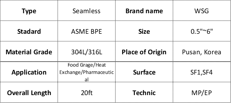 WSG Sanitary Tubes ASTM A270 3A ISO BPE 0.5 Inch 6 Inch 304 304L 316 316L Seamless Sanitary Tubing