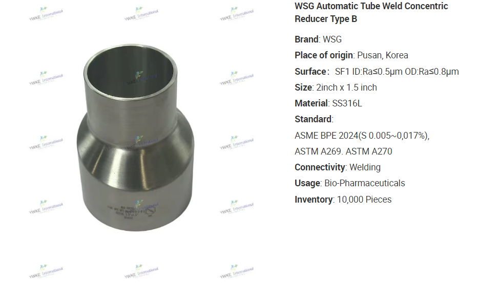 WSG Automatic Tube Weld Eccentric reducer ASME BPE SF1 316L Sanitary Fittings 2 " X 1.5 "