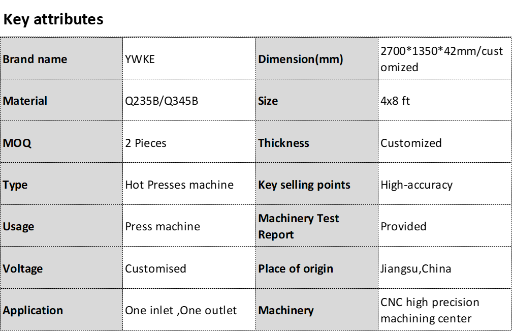 YWKE Press platen 2700x1350x42mm 4ft x 8ft for plywood press machine